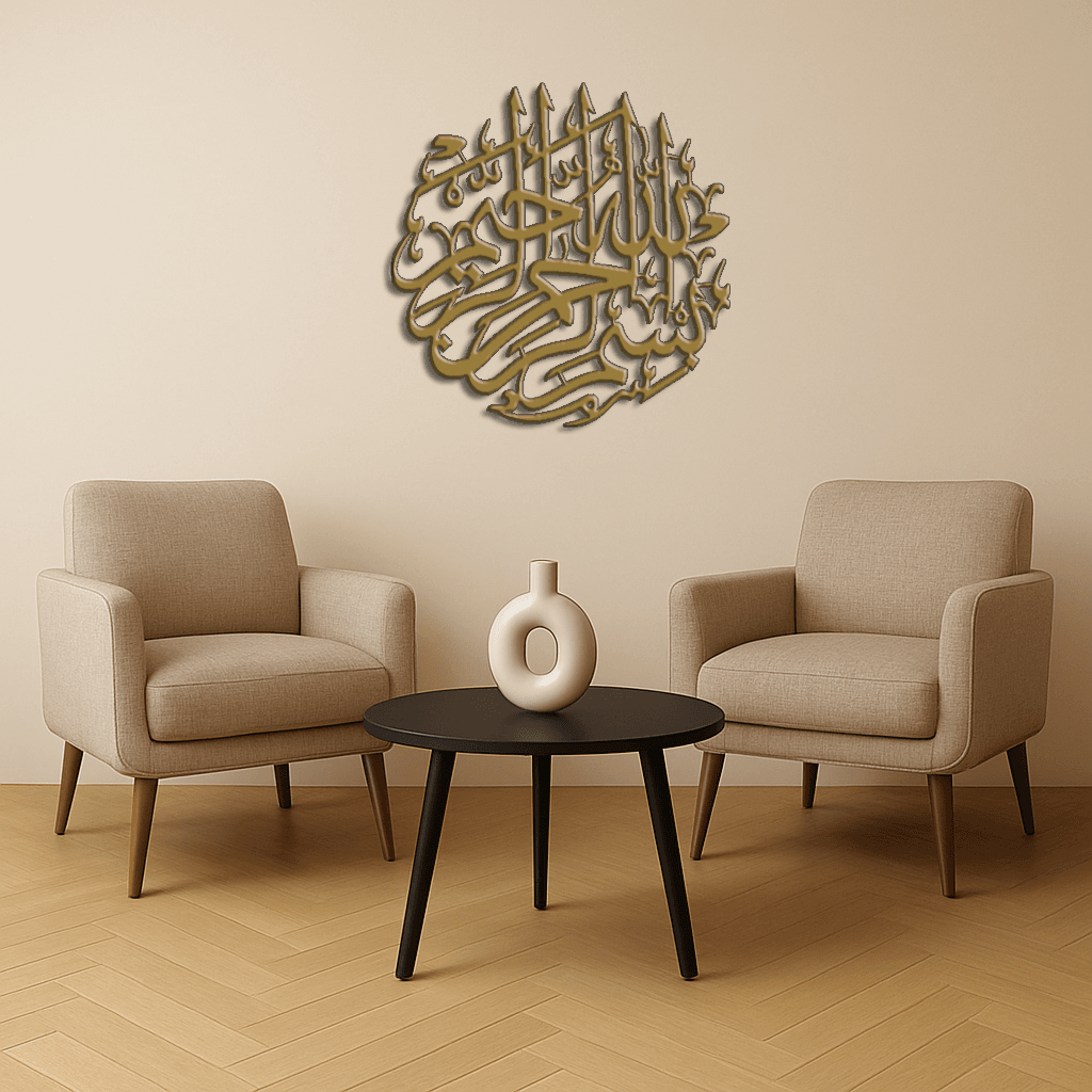 Begin every moment with blessings through the Bismillah Islamic Wall Art, a stunning piece that beautifully showcases the sacred phrase “In the name of Allah”. Designed to enhance both spiritual ambiance and interior aesthetics, this decor blends faith with modern elegance.