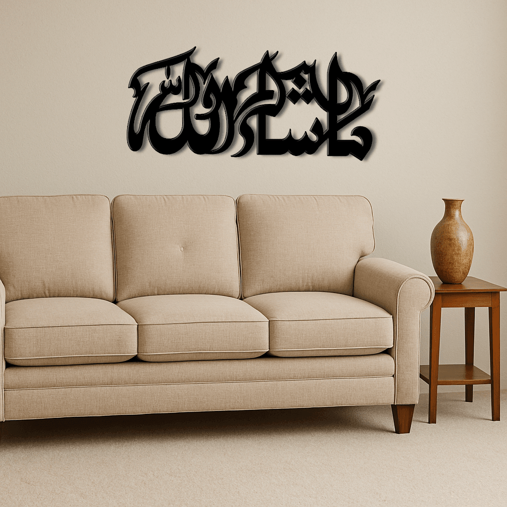 Beautifully crafted “Mashallah” wall art in Arabic calligraphy, perfect for adding a spiritual and elegant touch to your living space.