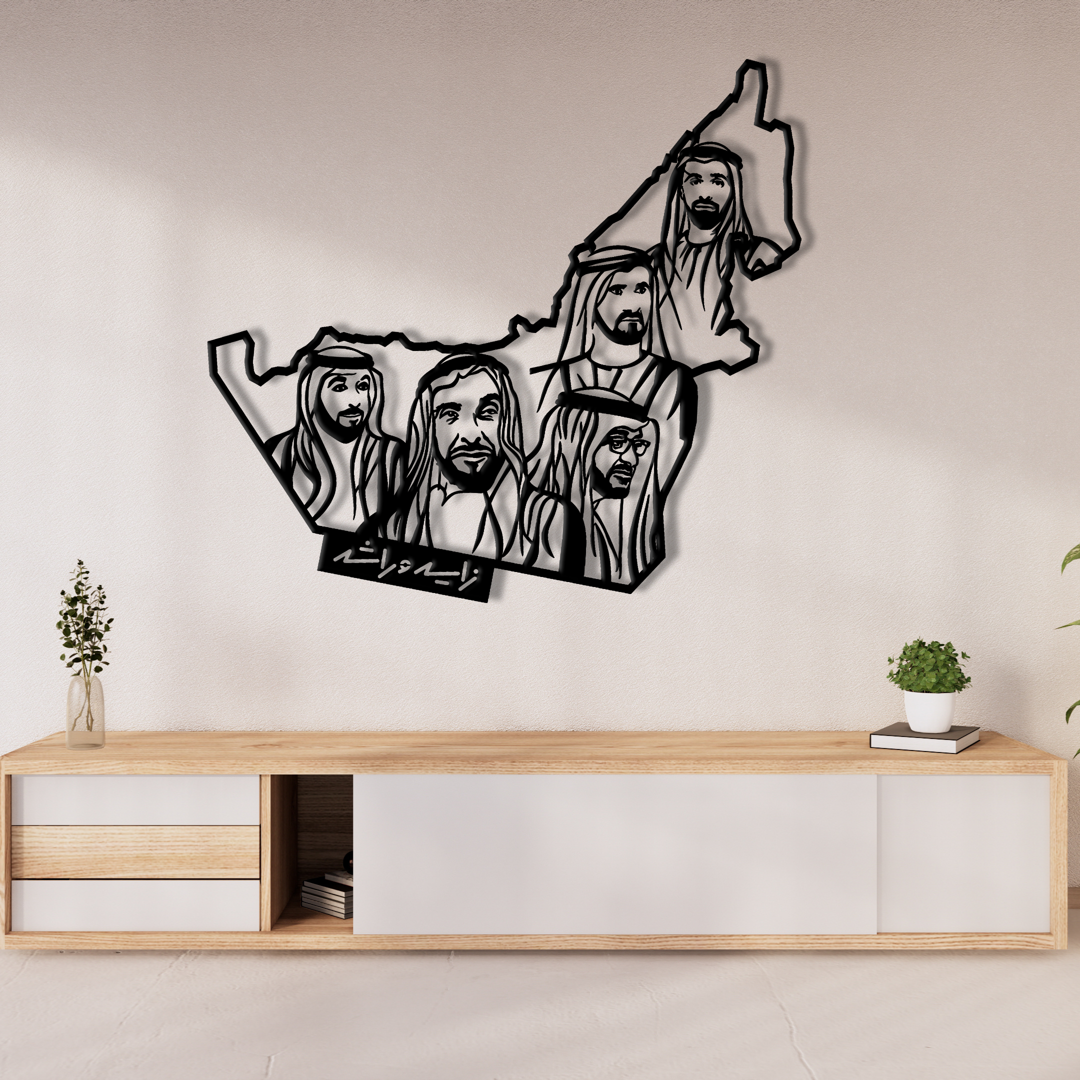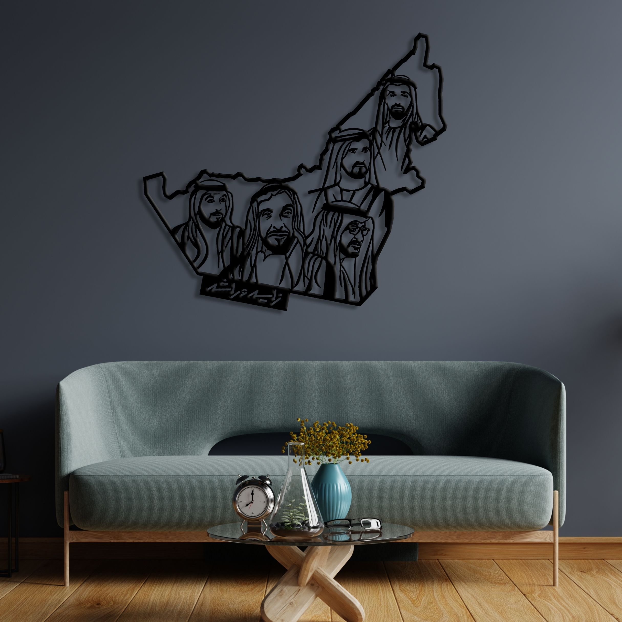 UAE Map Wall Art with Iconic Leaders.
